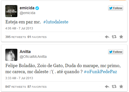 Anitta e Emicida lamentam a morte de Daleste #Lutodaleste #oFunkPedePaz